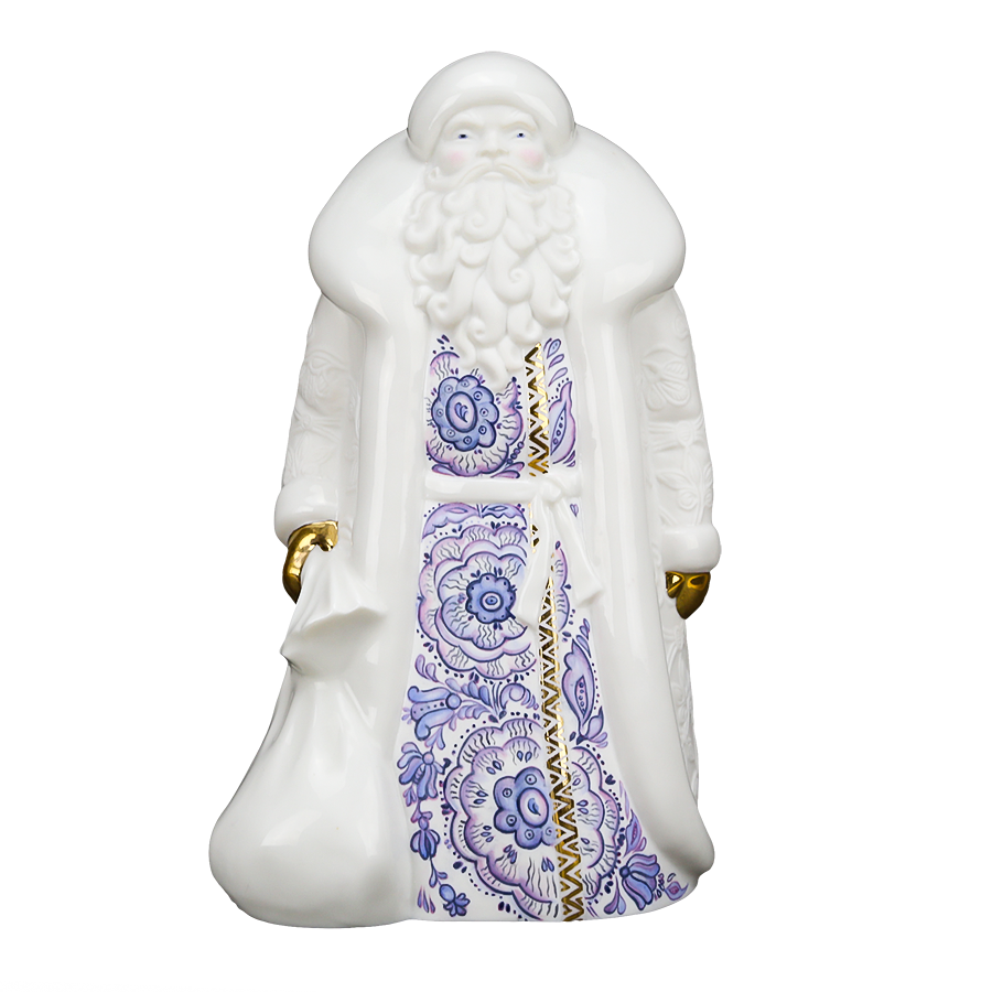"Дед Мороз" большой скульптура фарфоровая (Синие цветы)