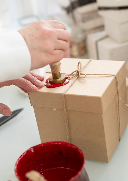 Крафтовая коробка, перевязанная бичевкой с сургучной печатью с нашим логотипом, становится символом заботы и мастерства, с которым создавалось фарфоровое изделие.